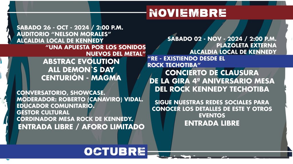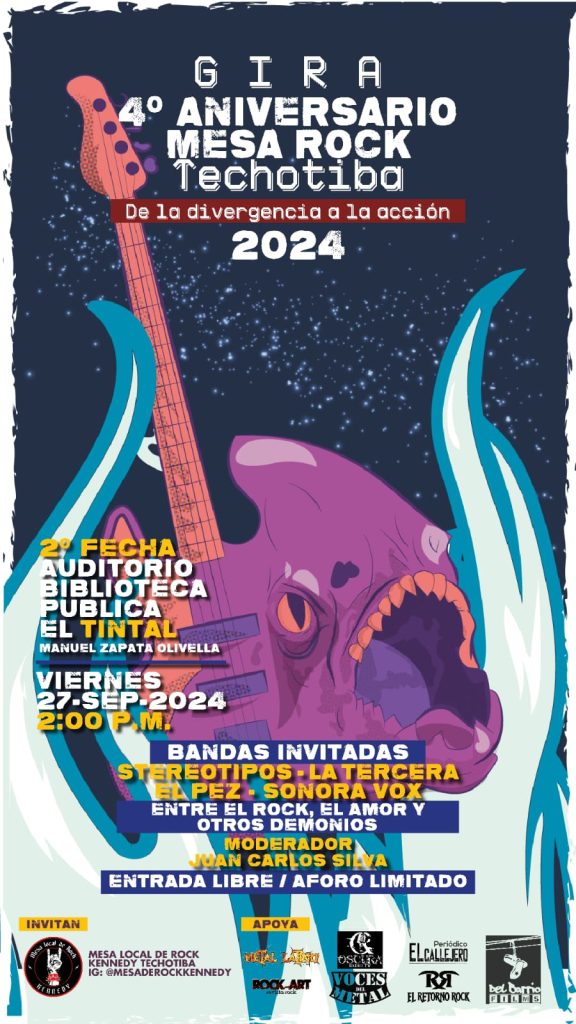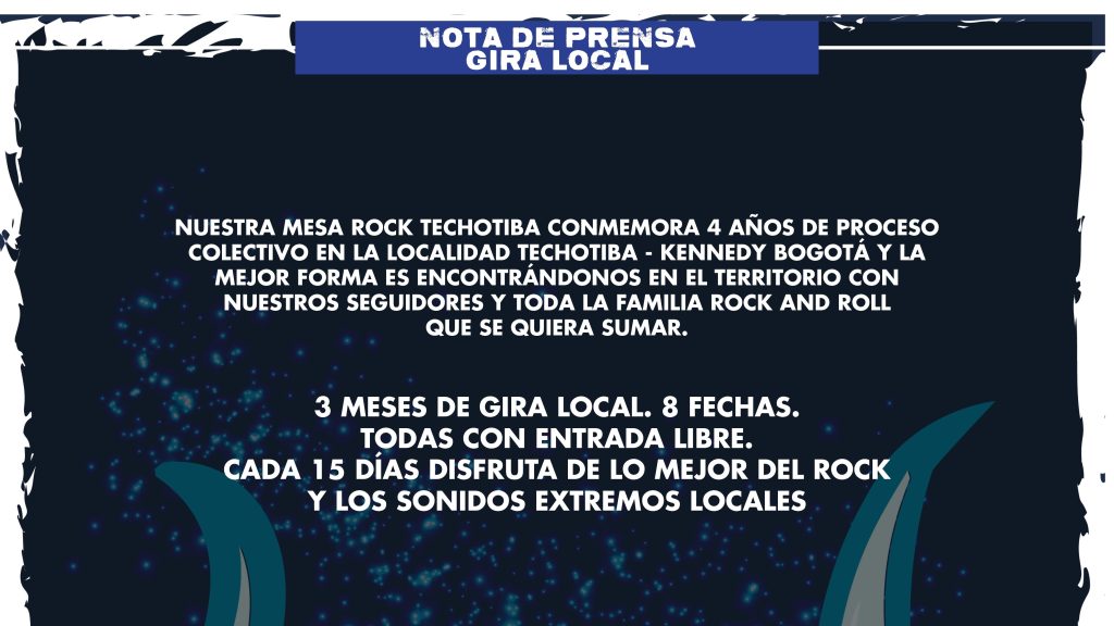 La Mesa Rock Techotiba conmemora 4 años de proceso colectivo en la localidad Techotiba – Kennedy Bogotá y la mejor forma es encontrarse en el territorio con sus seguidores y toda la familia Rock and Roll que se quiera sumar.