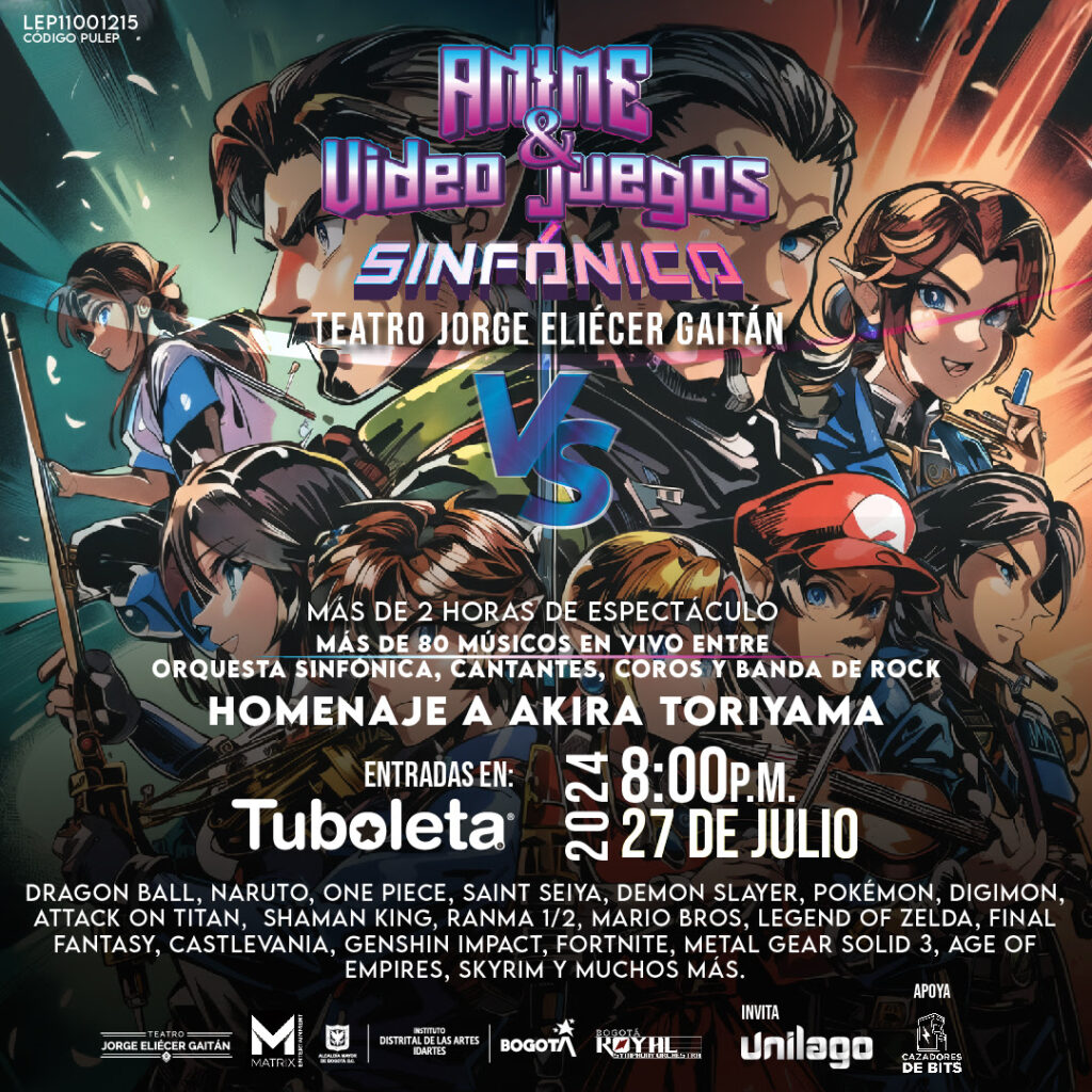 ¡Prepárate para una experiencia única donde se fusionan dos universos apasionantes: ¡los videojuegos y el anime, en un épico concierto sinfónico como nunca antes visto! El próximo 27 de julio, el majestuoso Teatro Jorge Eliécer Gaitán se convertirá en el escenario de un evento inolvidable: «Anime y Video Juegos Sinfónico». Este espectáculo magistral promete llevar a los asistentes a un viaje emocionante a través de los mundos fantásticos y los personajes emblemáticos que han marcado generaciones.
