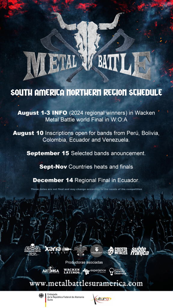 La competencia más esperada por las bandas de metal de Sudamérica ha comenzado. Wacken Metal Battle Suramérica Región Norte ha abierto sus inscripciones, ofreciendo una oportunidad única para bandas de Colombia, Venezuela, Ecuador, Perú y Bolivia de presentarse en el prestigioso Wacken Open Air 2025.