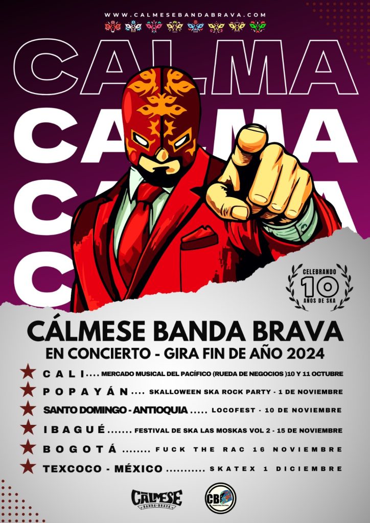 Cálmese Banda Brava es una banda colombiana que fusiona Ska, Reggae y Rock con vibrantes sonidos latinos, transmitiendo mensajes de amor, paz y justicia social. Desde su formación en 2013, la banda se ha destacado en la escena independiente latinoamericana por su originalidad y su capacidad para unir géneros y culturas, siempre con un enfoque en la creatividad y el compromiso. Su música enérgica y contagiosa busca inspirar a las audiencias, promoviendo la conexión y la acción a través de ritmos potentes y líricas profundas.