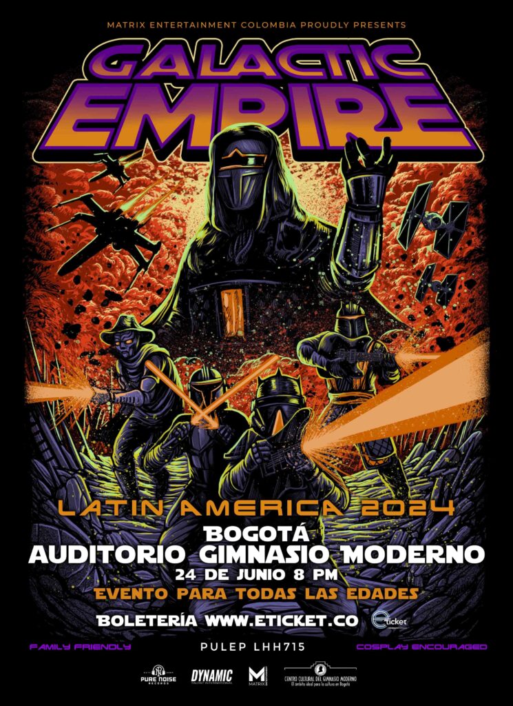 Con un nuevo álbum lanzado en el año 2023, ‘Special Edition’, la flota de GALACTIC EMPIRE desembarca en Bogotá el próximo 24 de junio con la intención de conquistar la ciudad, con un espectáculo para toda la familia en el que el cosplay es casi un deber. ¡Que la Fuerza te acompañe!» Galactic Empire es una banda de metal con una característica pintoresca: todos los músicos son personajes del universo Star Wars. Pero del lado Oscuro, como corresponde. Así podemos ver a Darth Vader en la guitarra líder o a Boba Fett detrás de la batería.