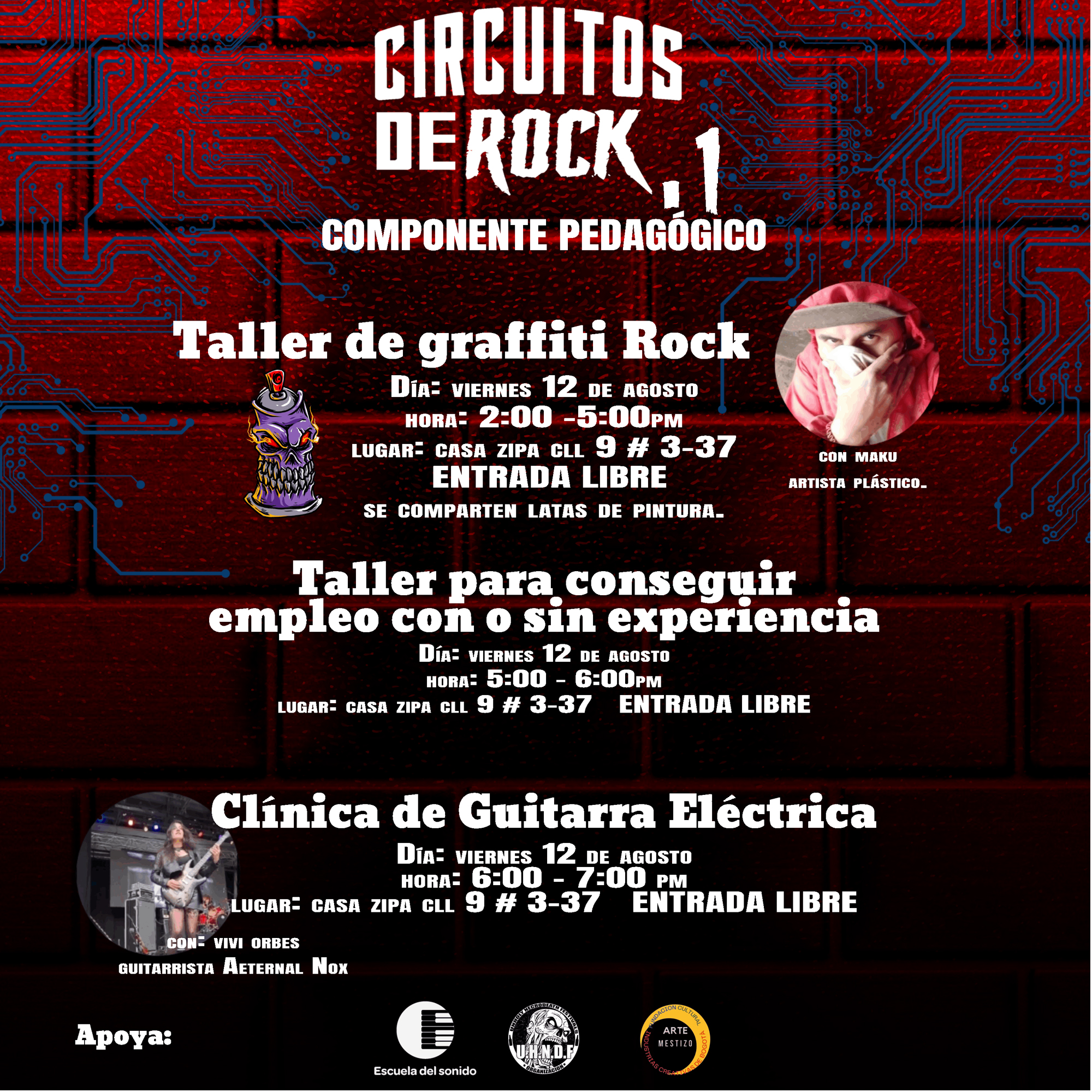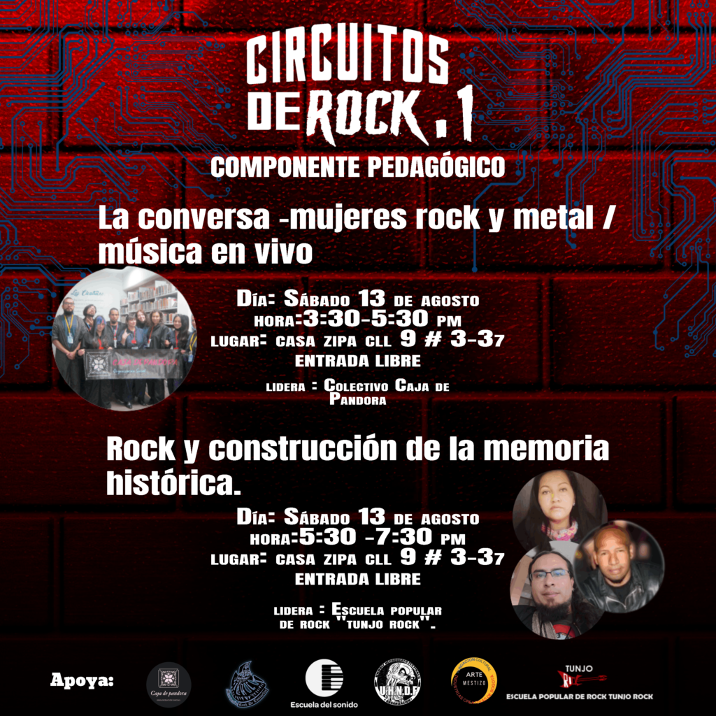 Las jornadas pedagógicas presentarán una serie de espacios entre talleres y conversatorios para ampliar discusiones acerca del impacto del rock dentro de la sociedad y espacios de formación para artistas independientes. Casa Zipa y Casa Artchimia serán los lugares en donde se realizarán estas jornadas los 12, 13 y 19 de agosto.