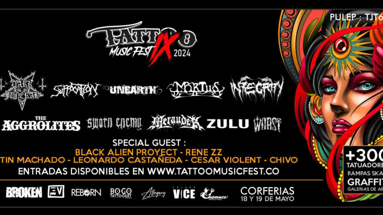 El Tattoo Music Fest llega a su novena edición y regresa a uno de los lugares más emblemáticos de Bogotá… Corferias recibirá el 18 y 19 de mayo a más de 20 agrupaciones y 200 tatuadores nacionales e internacionales. Además de influencers que han revolucionado la cultura del Tattoo a nivel mundial.