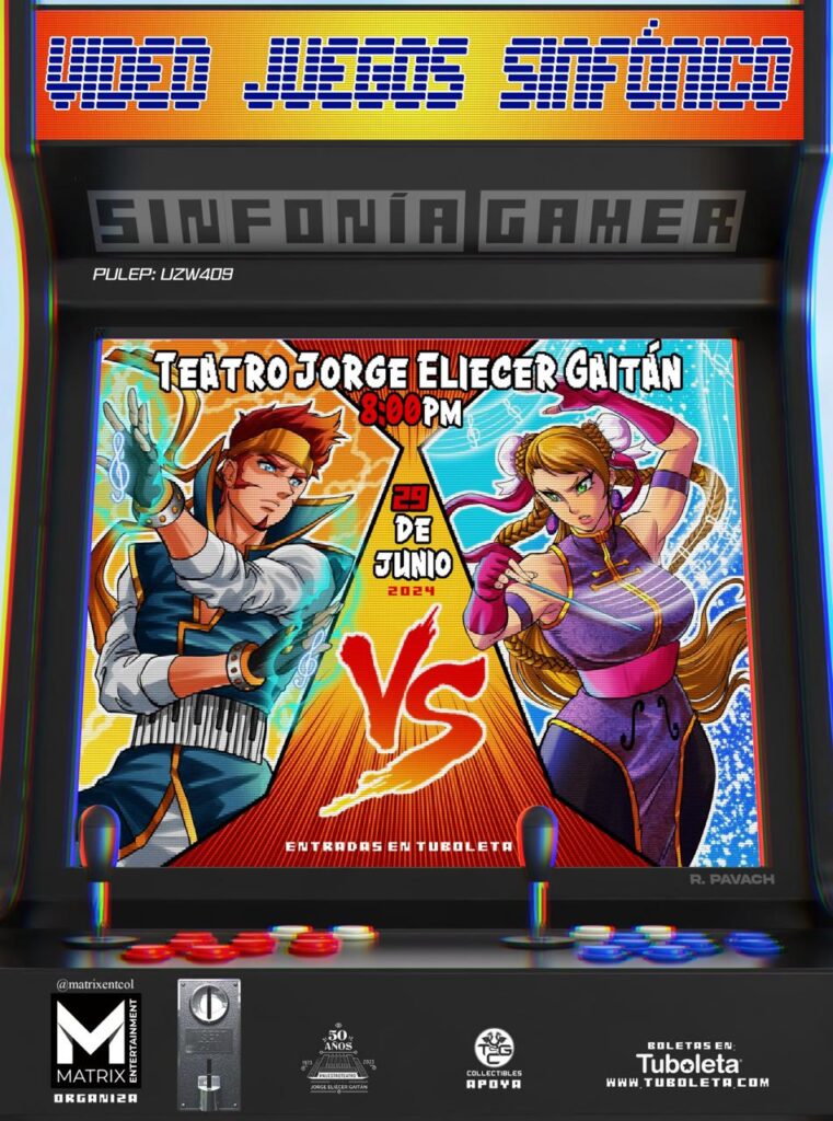 Enciende tu consola, alista los controles y recuerda los mejores trucos en la maquinita porque llega “Video Juegos Sinfónico”, la Sinfonía Gamer llegará para quedarse. Una gran apuesta llegará al Teatro Jorge Eliecer gaitán el primer día de junio, en una premonición de lo que fueron y serán las vacaciones de mitad de año, una gran selección de intros, canciones y recuerdos que llegarán a tu cabeza acompañados por una banda sinfónica y por su puesto una banda de rock. Desearás tener los controles de tu consola, o tener créditos en tu video juego favorito por que te llevaremos a una noche llena de aventuras inolvidable.